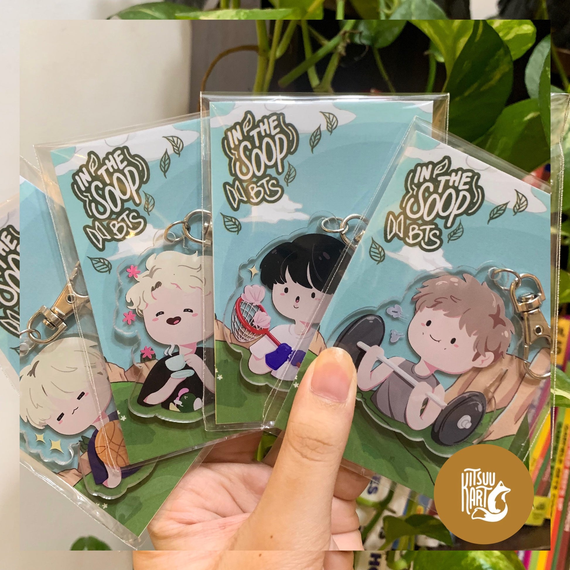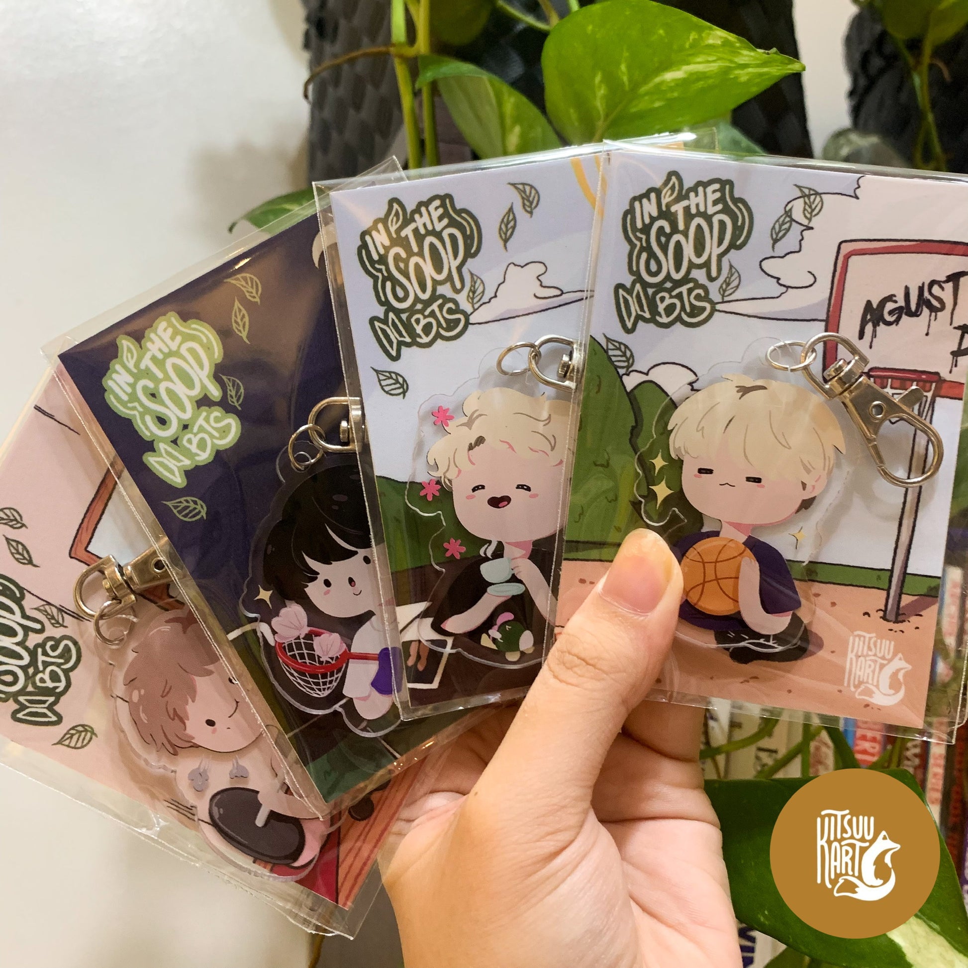 For the ITS OT7 Acrylic Keychain Sets, backings will be collectible mini-artworks that are themed and unique to each member. OT7 Keychain Sets will also come in special themed packaging.