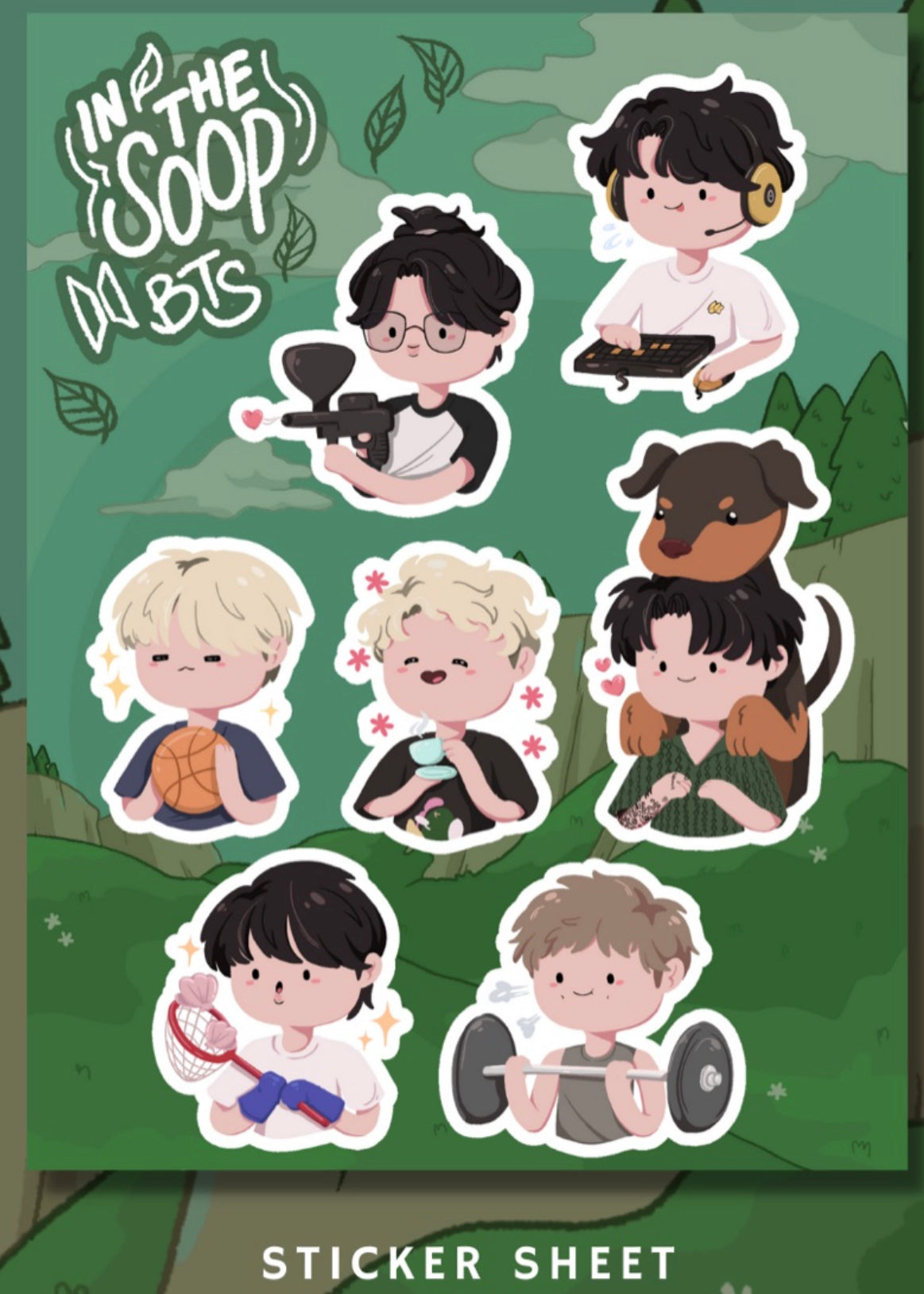 BTS meets Adventure Time in this match made in heaven mash-up! Complete the gang in their nature-laden adventure with our BTS ITS fanmade merch that are perfect for your bags, binders or as stationary deco!